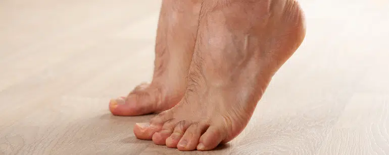 As a child, you often stood on tiptoe, for example to get a better view or to get to the shelves that were too high. As an adult you are less likely to find yourself in this position. Lifting your heels and shifting your weight to the toes strengthens the foot muscles. If standing on tiptoe is easy for you, you can challenge yourself by lifting one leg while standing on tiptoe and trying to balance. You will find that after a while your feet will feel stronger.
